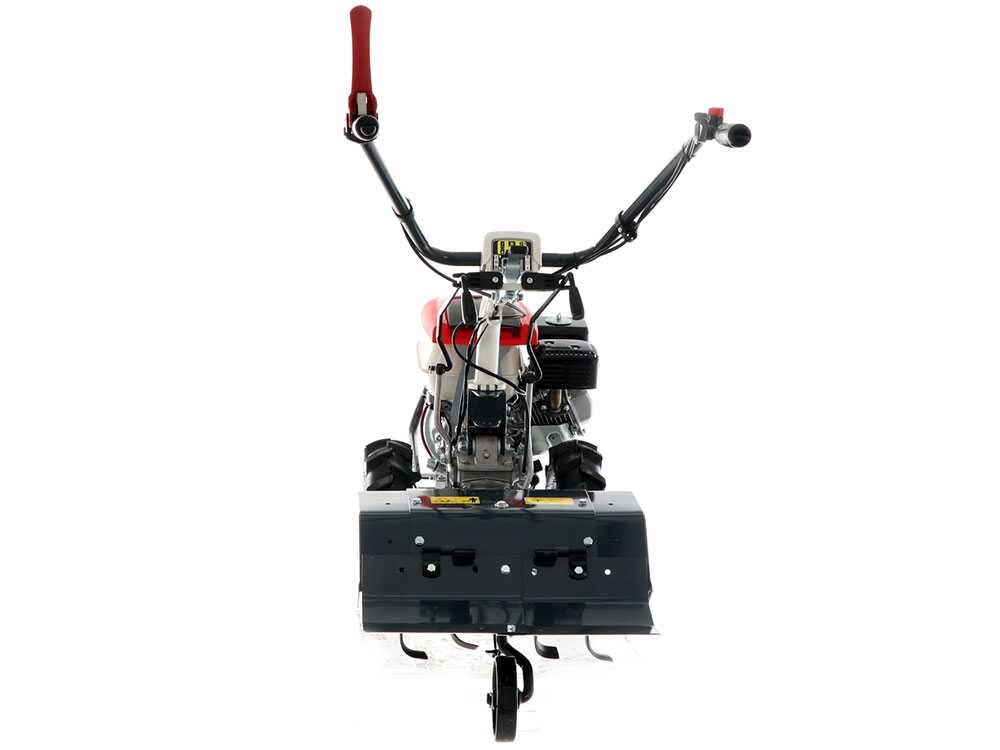Une autre caractéristique intéressante de cette machine est la présence de mancherons réglables et réversibles, qui permettent l’utilisation d’outils à l’avant et à l’arrière.