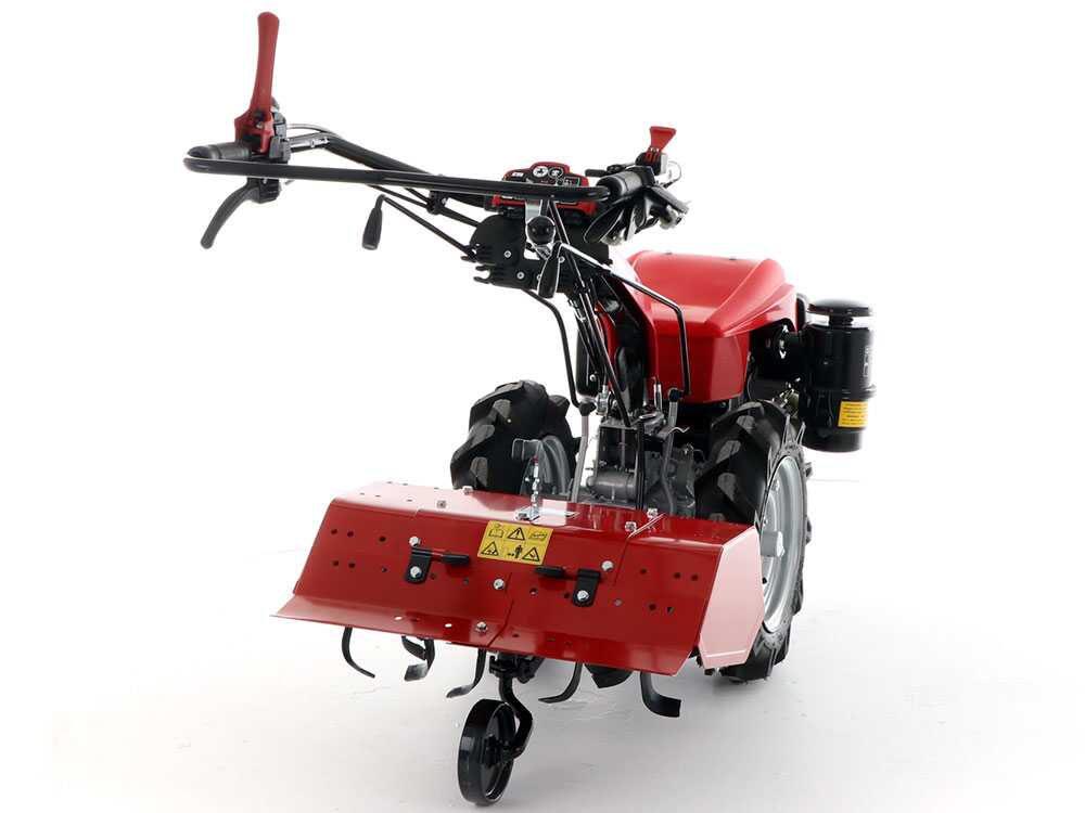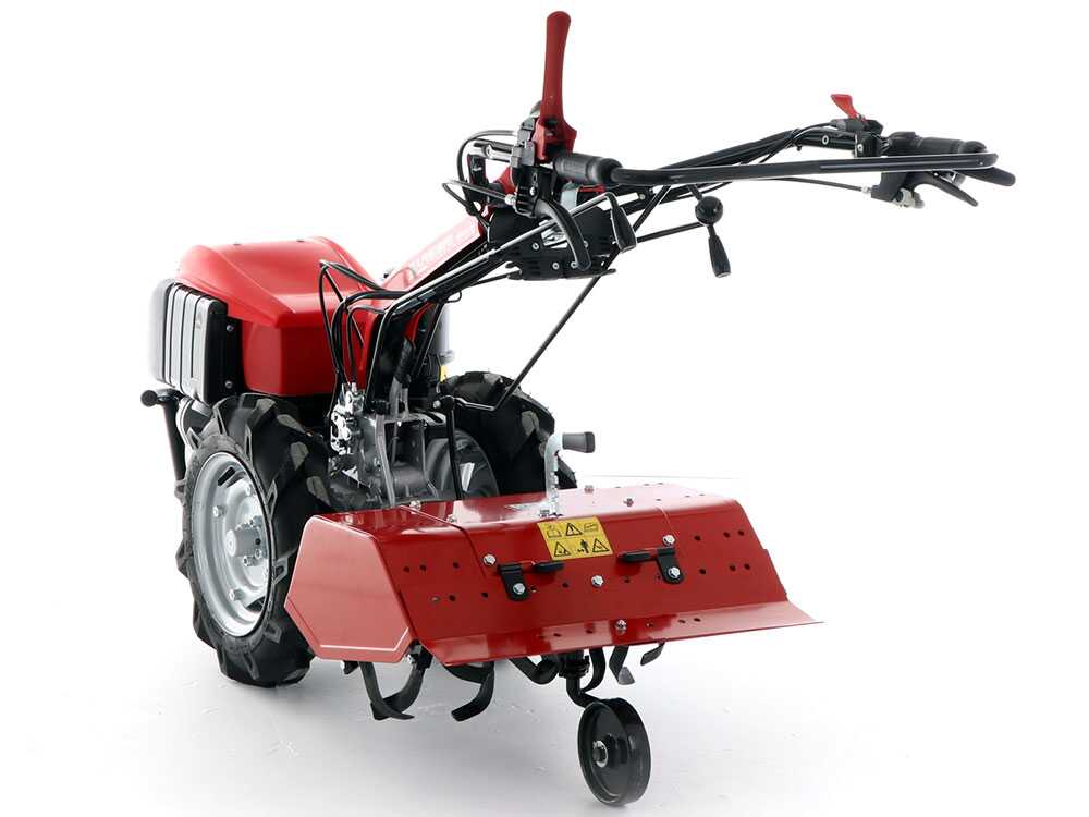 La machine est équipée de 5 vitesses, trois en avant et deux en marche arrière, la deuxième marche arrière n’est cependant pas sélectionnable dans la configuration du motoculteur, pour des raisons de sécurité à l’égard de l’opérateur.