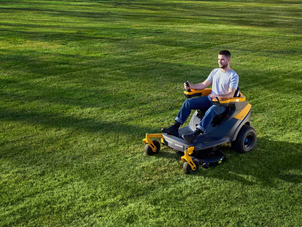 - Une tondeuse autoportée conçue pour l’utilisateur : facilité d’accès et de sortie : le large marchepied offre beaucoup d’espace pour les jambes. Vous bénéficiez d’une visibilité complète sur chaque zone de travail. Enfin, vous pouvez travailler avec une machine qui respecte vos besoins physiques. Vous pouvez conduire confortablement grâce au siège avec soutien lombaire haut et double système de suspension parallèle qui absorbe les vibrations sur les terrains accidentés. Toutes les commandes sont à portée de main.