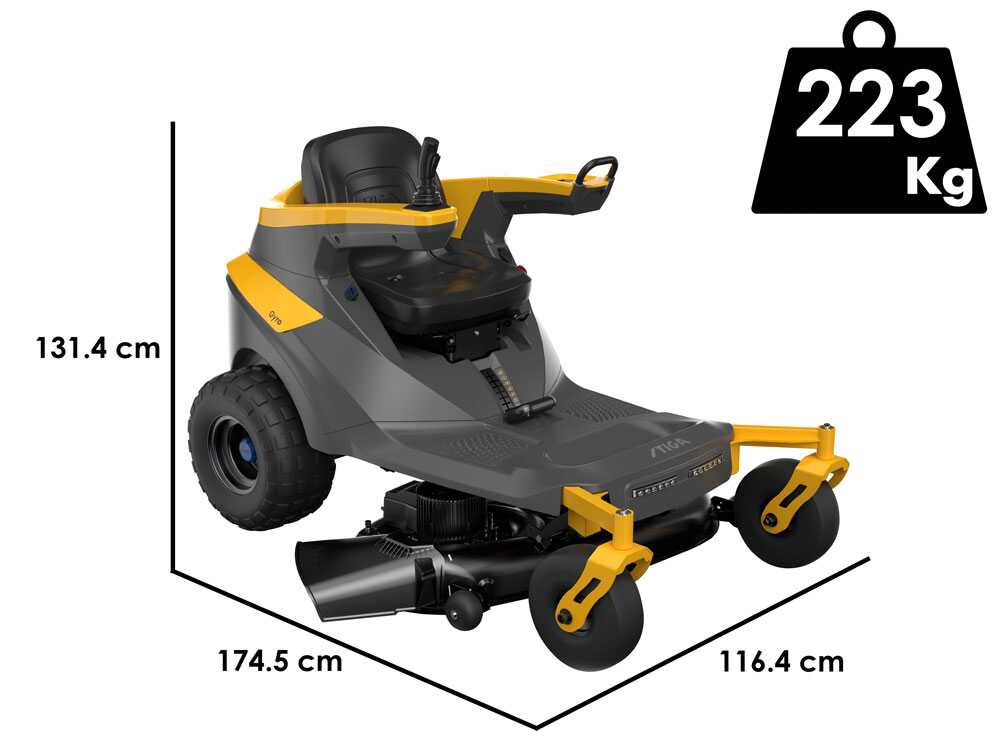 La technologie exclusive du joystick Stiga offre un contrôle total de la direction, de la conduite et de la vitesse, ainsi qu’un rayon de braquage de 360º pour tondre facilement autour des arbres, des arbustes, des parterres de fleurs et des ornements de jardin, tout comme un tracteur à rayon de braquage zéro, mais dans une version améliorée.